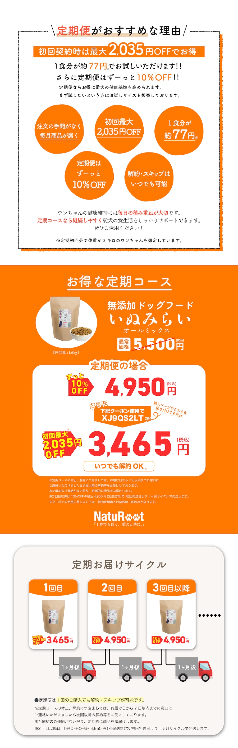 便利でお得な定期便で、「いぬみらい オールミックス」をぜひご利用ください。